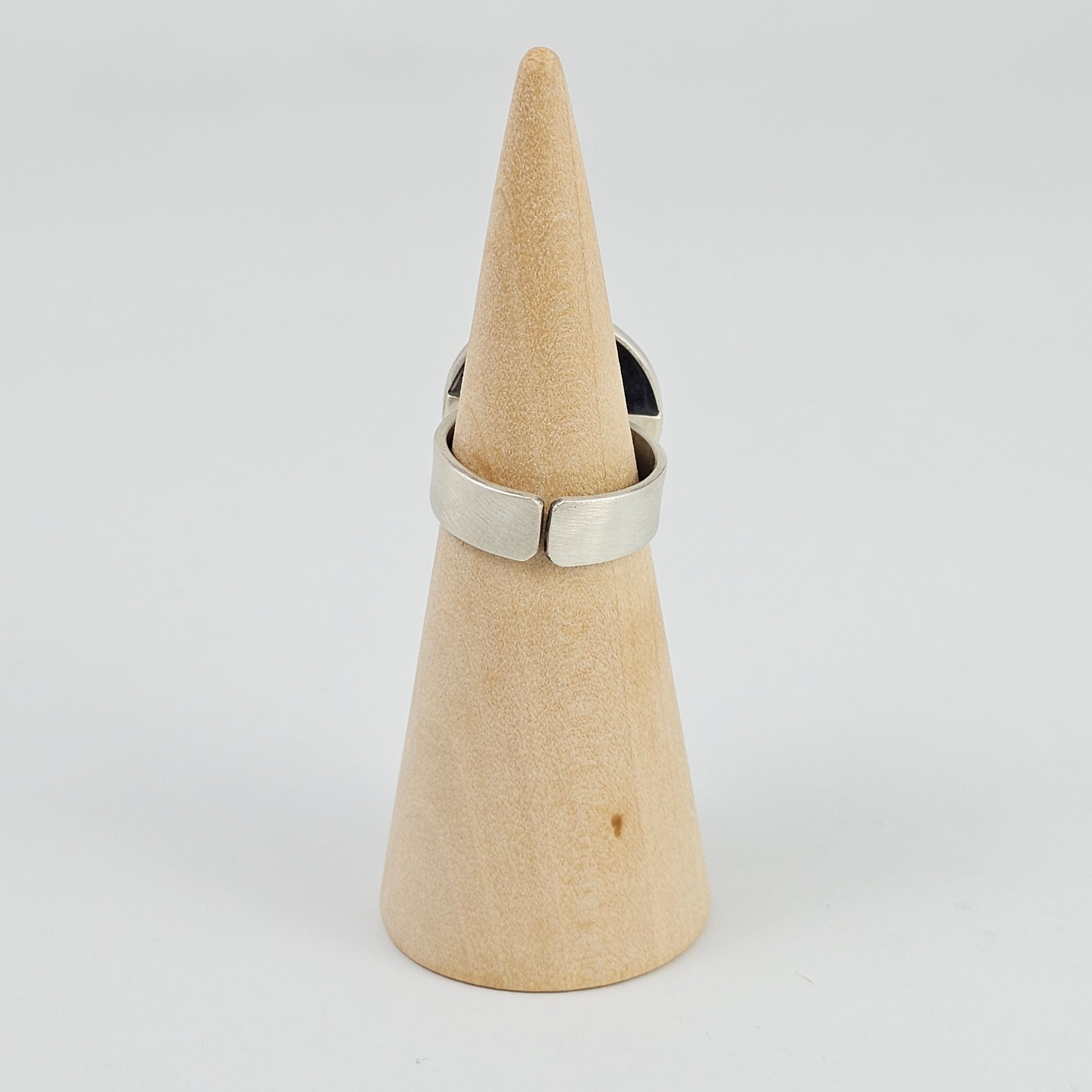 This handcrafted adjustable ring is made from 925 sterling silver with an oxidized finish, featuring a unique coin design. Its navy, blue, and white accents add subtle elegance to the silver band. Crafted with precision and high-quality materials, this resizable piece offers both style and versatility. To maintain its condition, avoid exposure to water, harsh chemicals, and abrasive cleaners, and store it in a sealed bag when not worn.