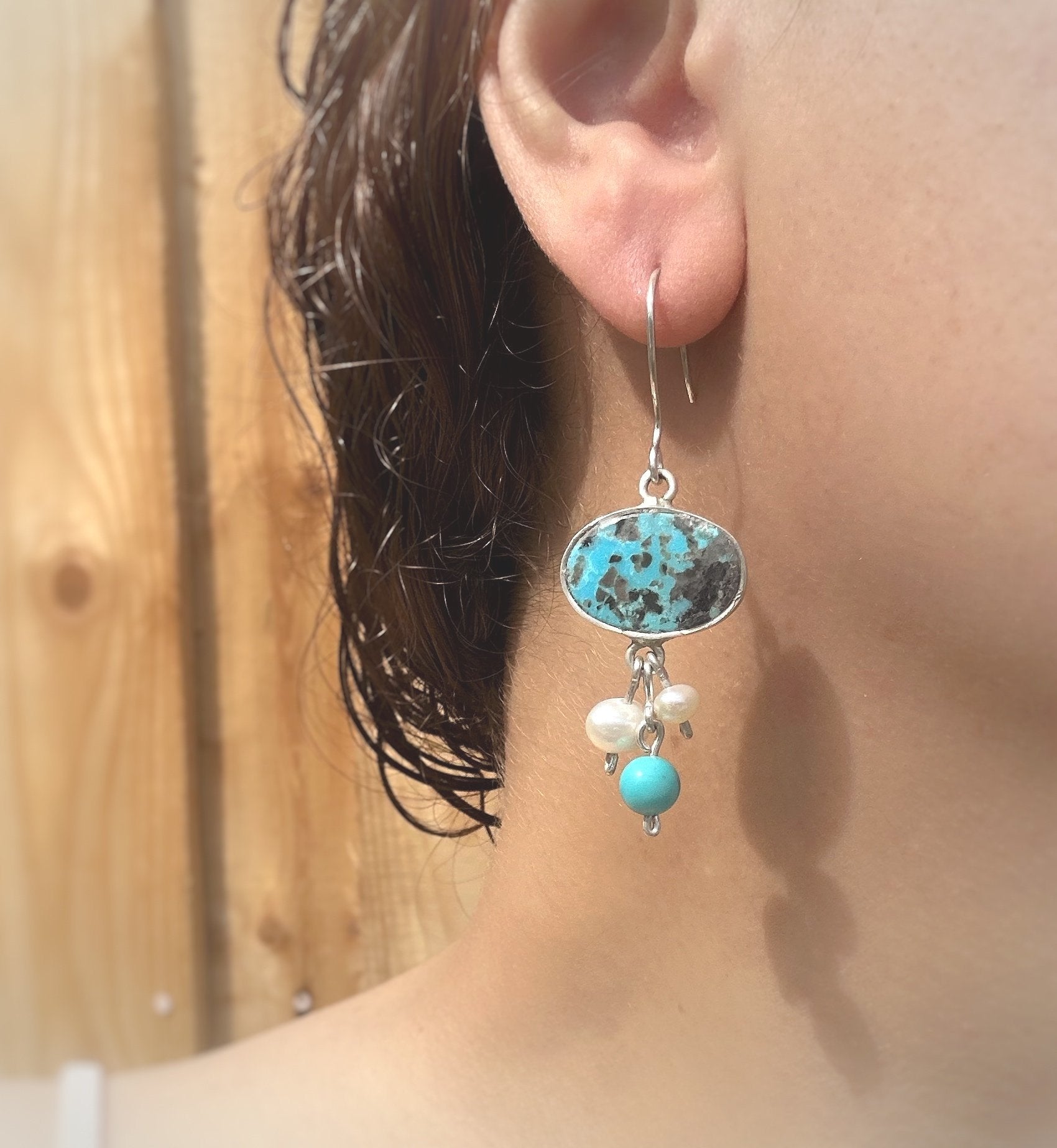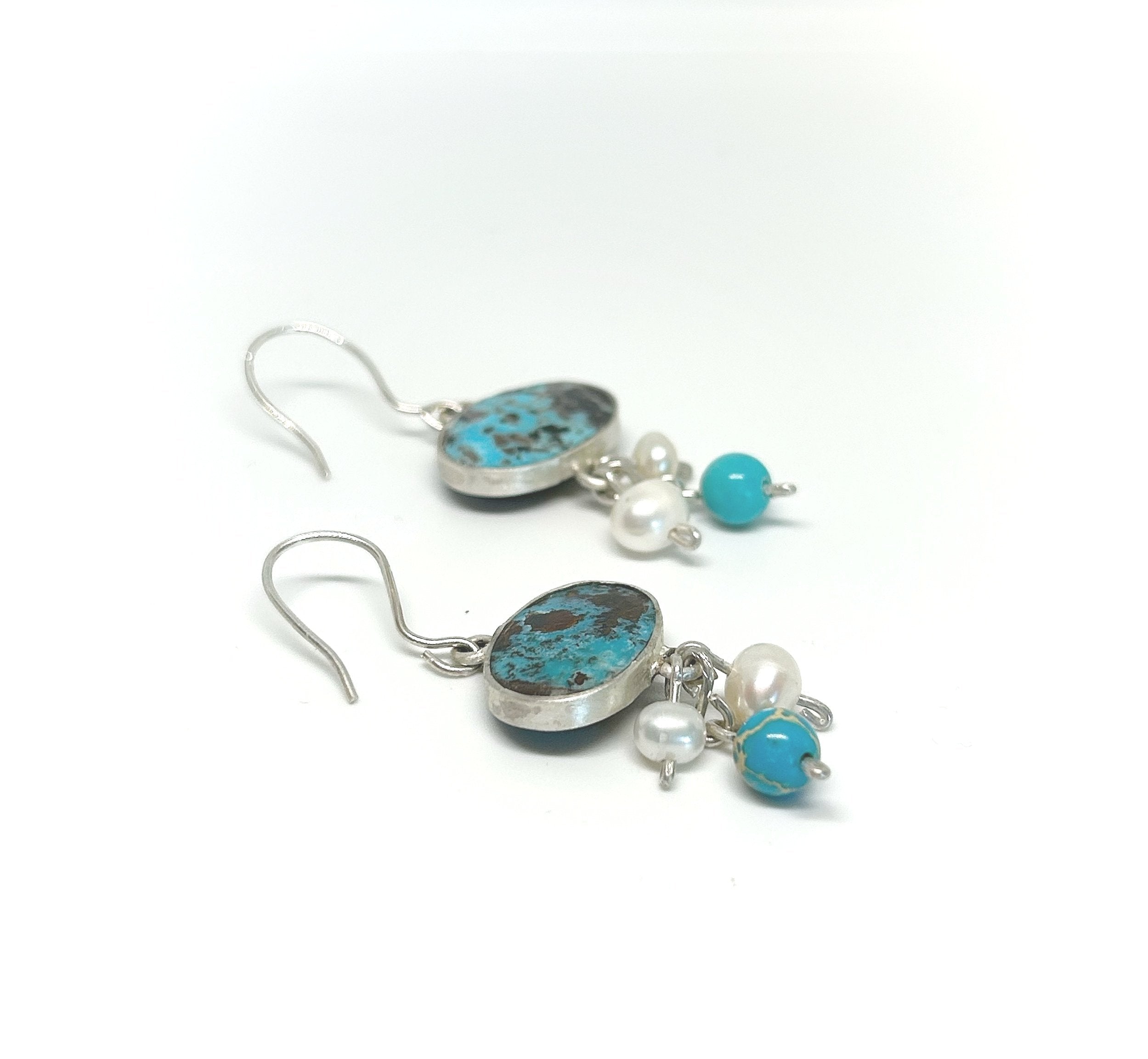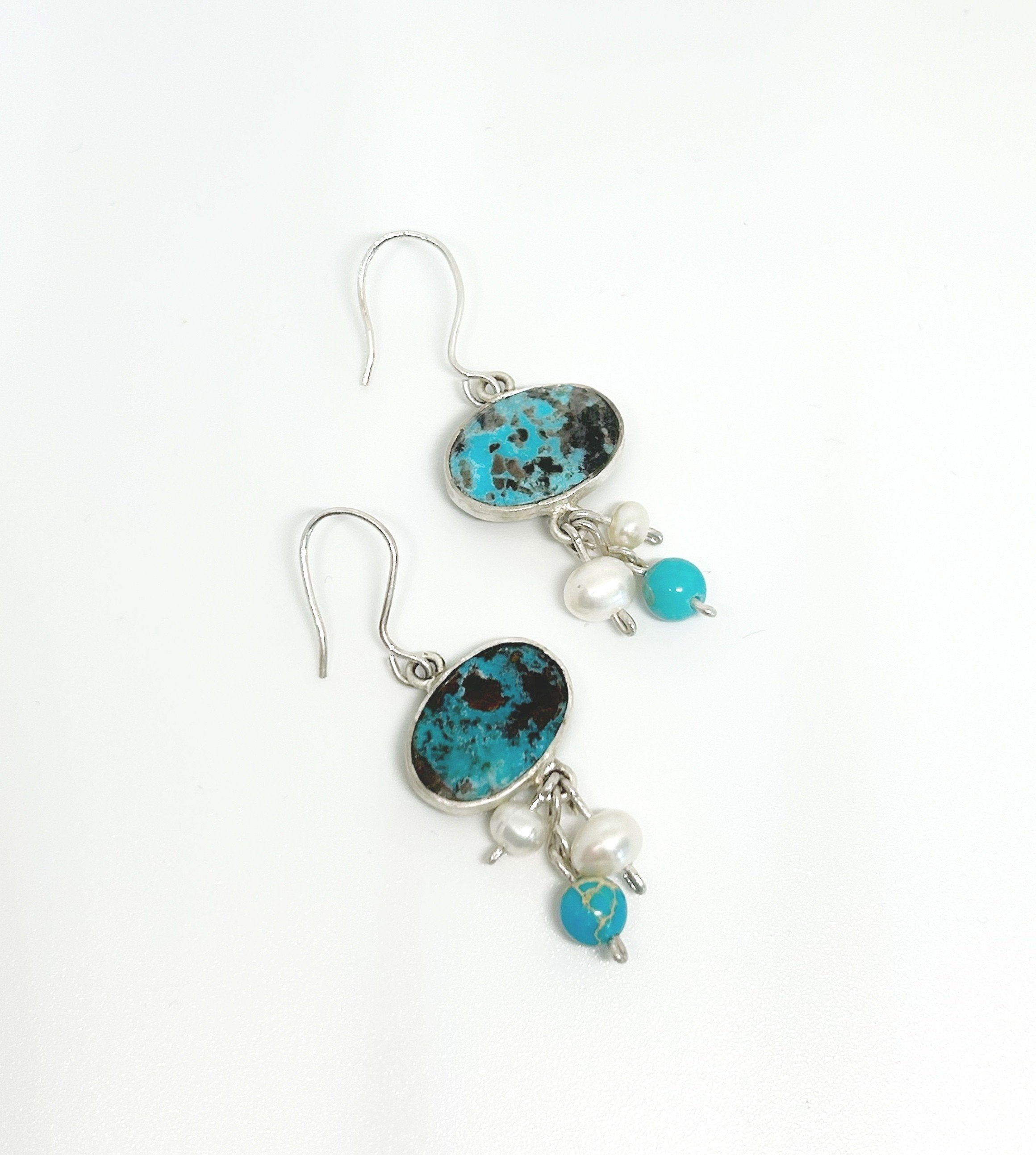Crafted from silver and turquoise, these oval earrings feature a hook closure designed for comfortable wear on the earlobe. Measuring 2 inches in length and 3/4 inches in width, they are meticulously handmade with premium materials and precise craftsmanship. To maintain their quality, avoid exposure to water, harsh chemicals, and abrasive cleaners. Store them in a sealed plastic bag when not in use to prevent oxidation and preserve their appearance.