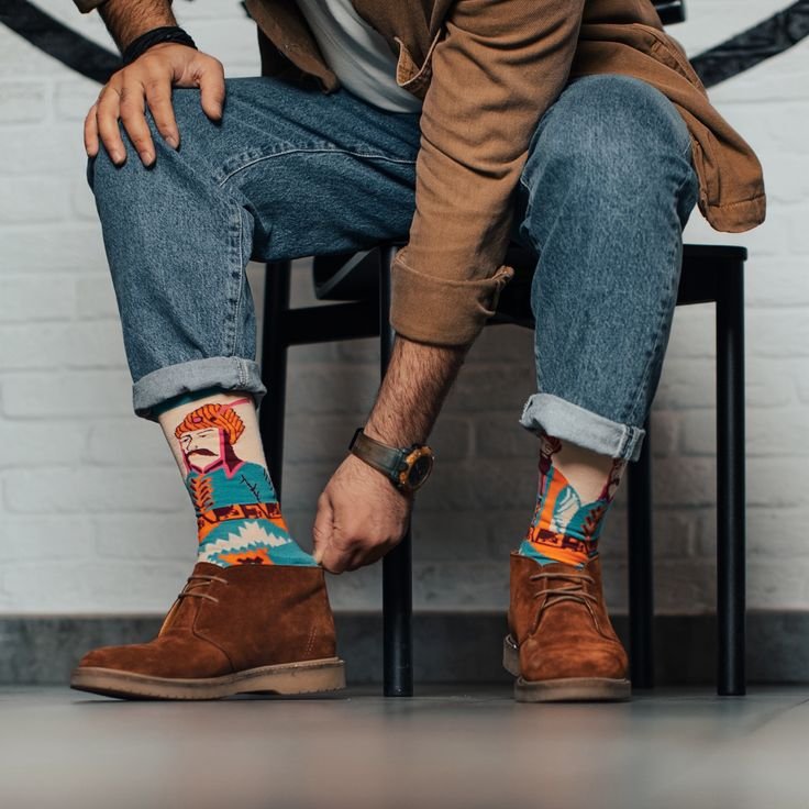 The Khan Designer Socks from RAFAEL AZIZ's Limited Heritage Collection are a sartorial tribute to the storied rulers of the past. Adorned with the dignified portrait of a khan, set against a canvas of earthy tones and vibrant turquoise, these socks merge the grandeur of history with the flair of contemporary fashion.