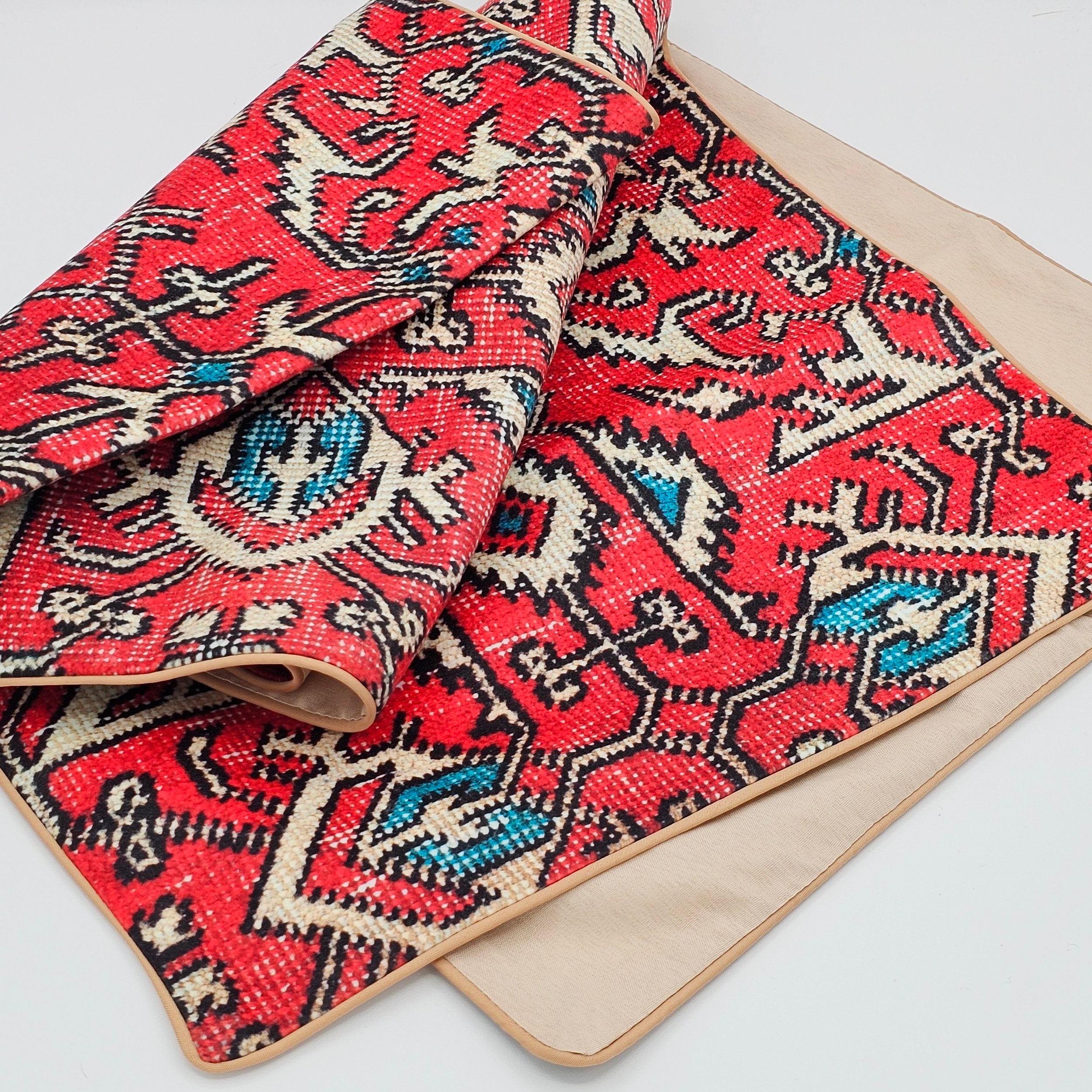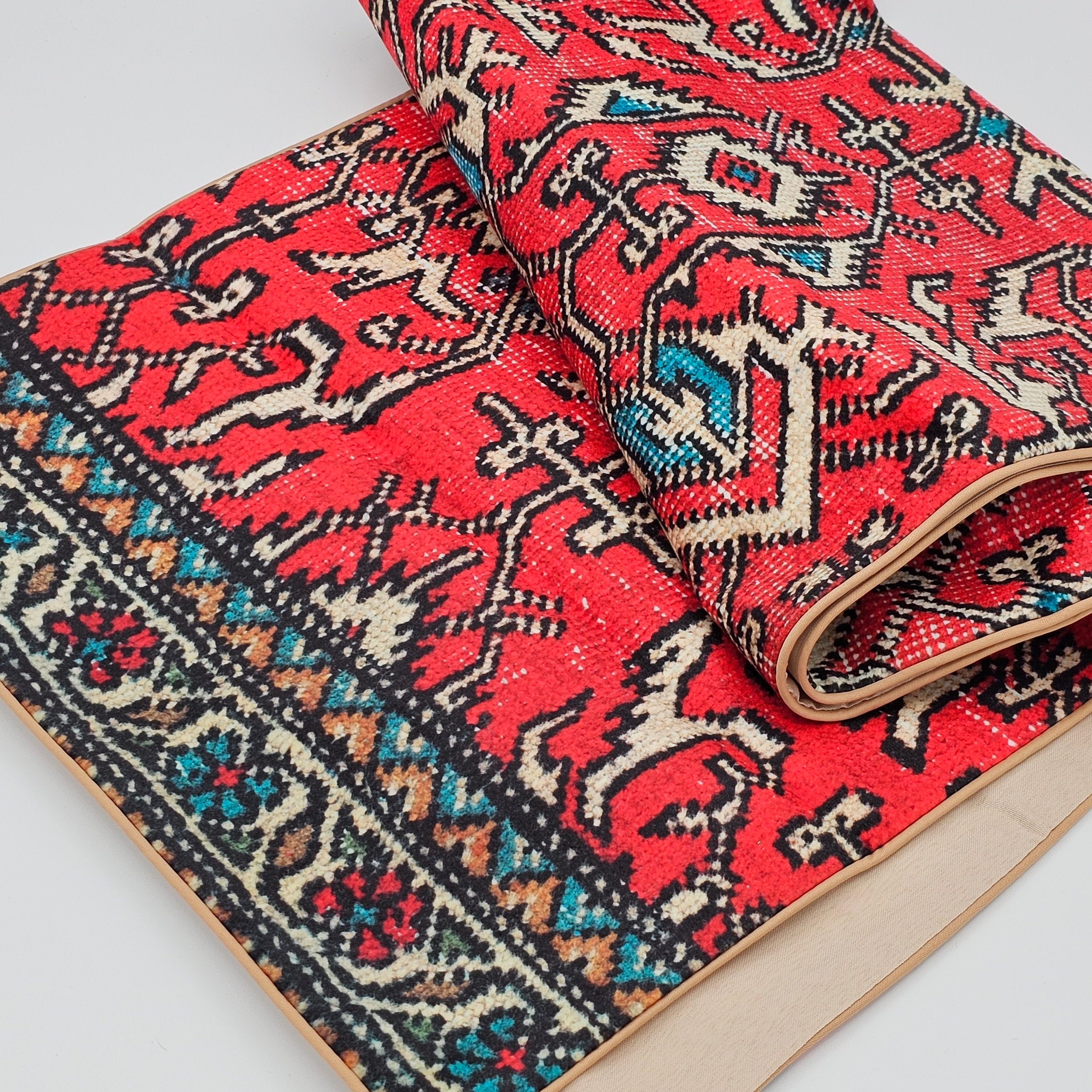 This Bokhara Runner measures 50" long and 13" wide, crafted from soft velvet in a rectangular shape. It is lightweight at 0.5 lb, ideal for adding a touch of elegance to your space.