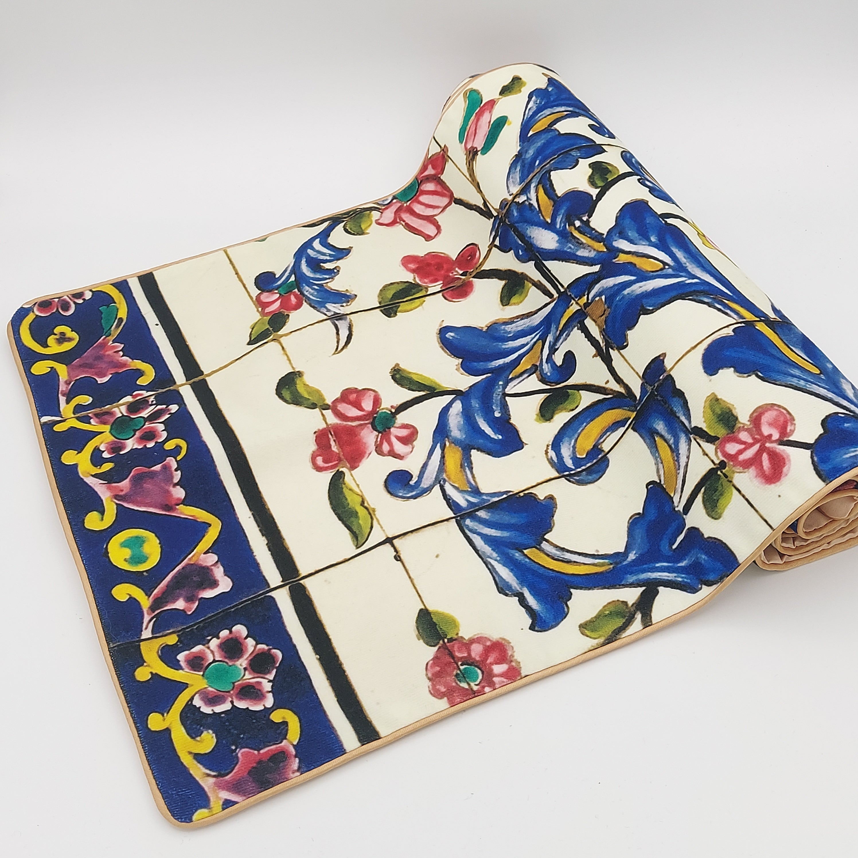 The Vase & Flower Velvet Runner brings distinctive style to all tables with its striking pattern. Measuring 53 1/4" long by 13 3/4" wide, this rectangular runner fits perfectly on any table while making a bold design statement. The unique motif adds character and visual interest to any room's décor.