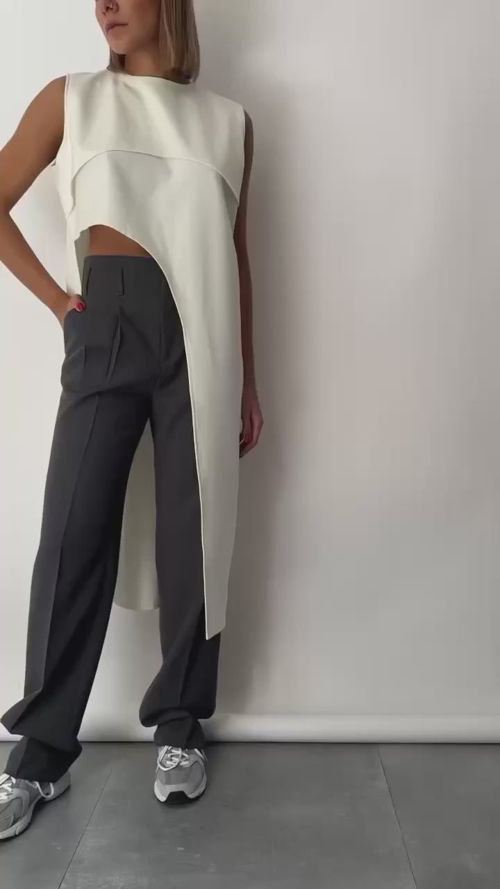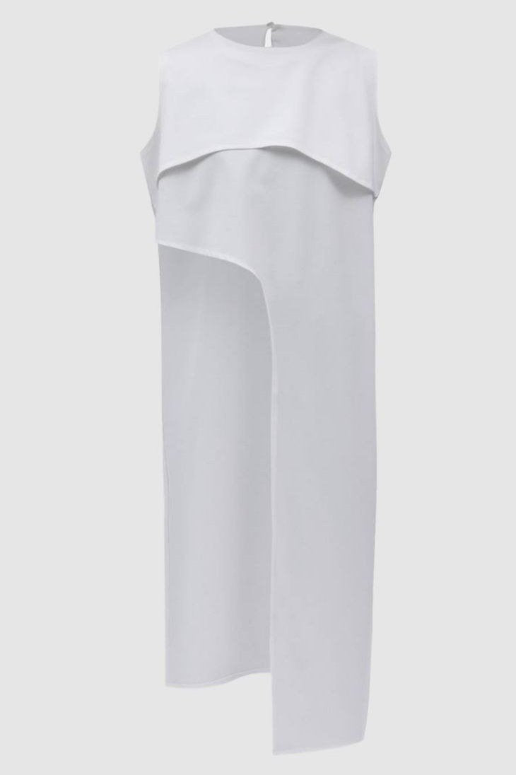 Short oversized dress/shirt, with a half standing collar and asymmetric sleeves, can be used as a shirt or dress.